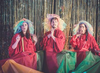 We tell epic stories in intimate settings, packed with live music, comedy and spontaneity. We perform with a playful mischief and create events accessible to all who attend and participate in them.