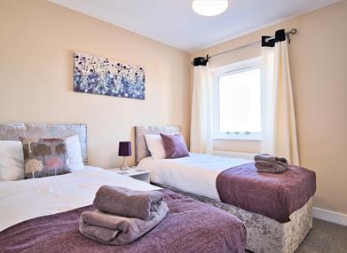 1 double bedroom, 1 twin bedroom with en-suite and 1 single bedroom. Lounge / diner with double sofa bed. Kitchen with all amenities including cooker, microwave, fridge freezer, dishwasher and washing machine. 1 bathroom with over bath shower. 1 en-suite and 1 downstairs WC.